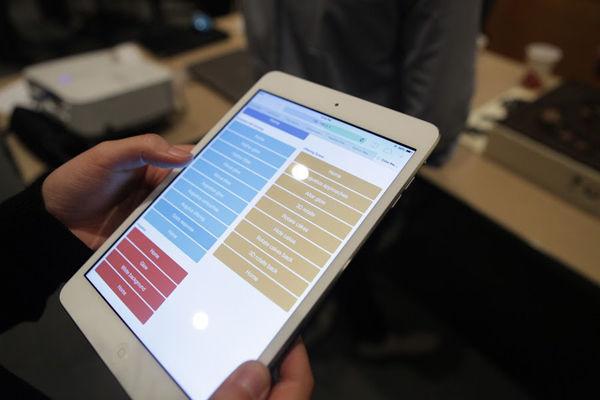 We connected an openFrameworks application to our interface controller, which was just a web page, using Spacebrew, an open toolkit to connect interactive platforms. Our interface featured sequenced buttons (which was decided based on the presenter's discourse) that the presenter could use during their presentation.
