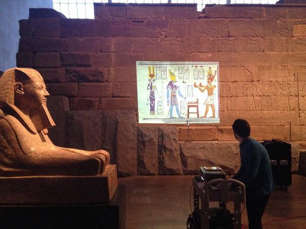 One of the goals of the MediaLab is to explore the use of design and emerging technologies to improve the museum experience. Projection mapping, also known as spatial augmented reality, is a technology that can turn physical objects and buildings into a surface for projected light. This technique creates an enhanced experience for the audience by combining digital information with real objects. While the MediaLab was exploring how projection mapping could be used in the Museum, an opportunity arose to collaborate with the Department of Egyptian Art.