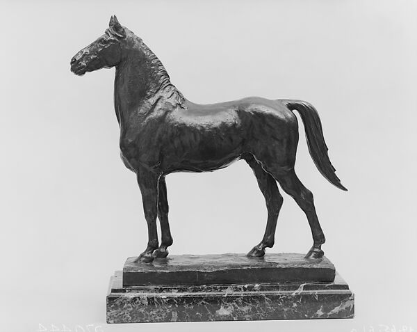 Proctor was an accomplished modeler of equine subjects, returning to the theme throughout his career in both monumental works and his finely wrought statuettes. In this statuette of a Morgan stallion, Proctor has portrayed an American horse bred for its strength and lightness. He created a naturalistic representation that emphasizes the striking silhouette characteristic of the breed.