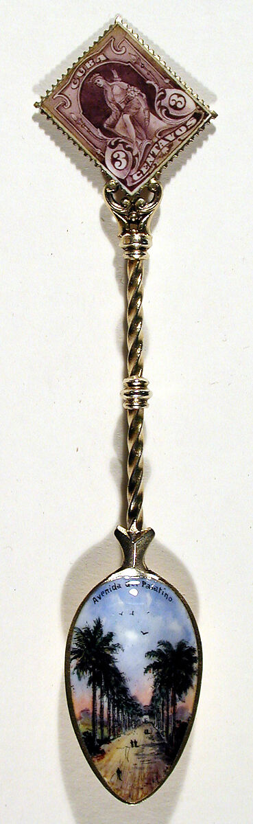 - Title: Souvenir spoon with view of a long avenue and finial in the form of a postage stamp