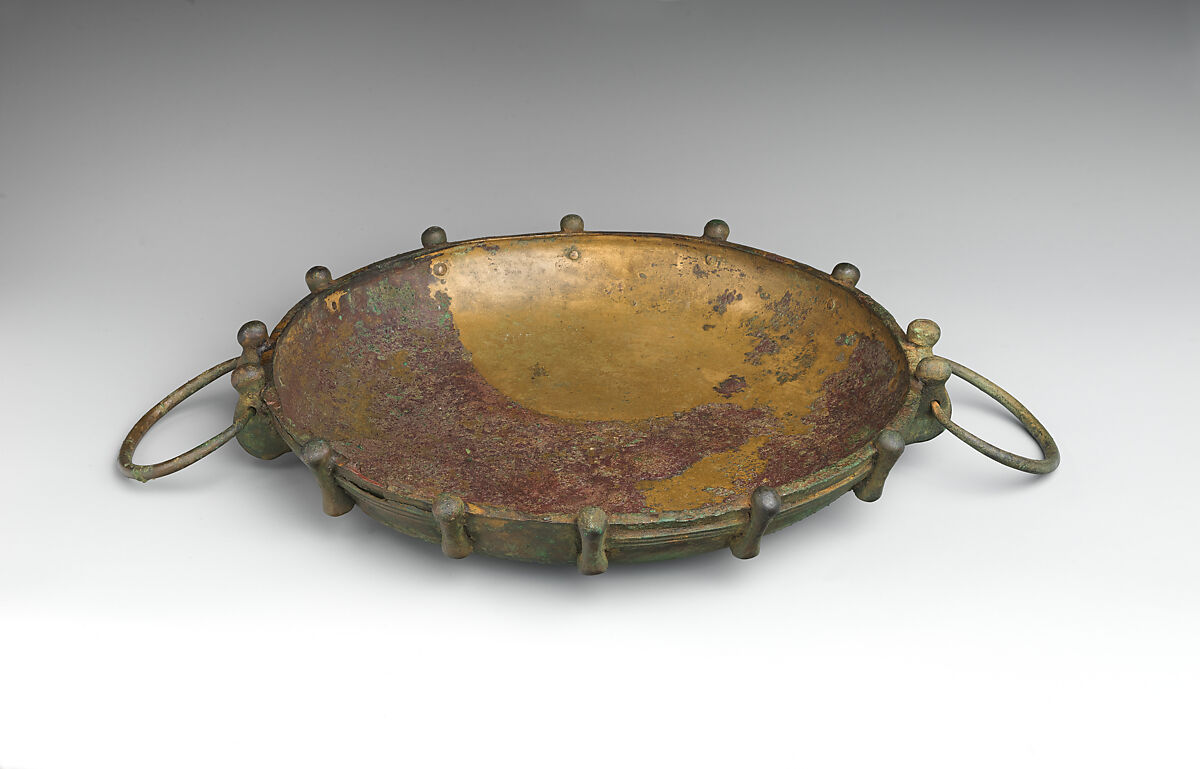 This type of bowl, with handle attachments in the form of double spools and spool-like decorations on the banded rim, was produced in Phrygia, a region to the east of Lydia.