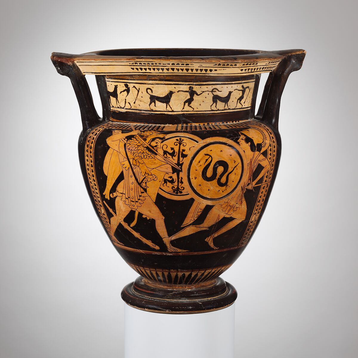 - Title: Terracotta column-krater (bowl for mixing wine and water)