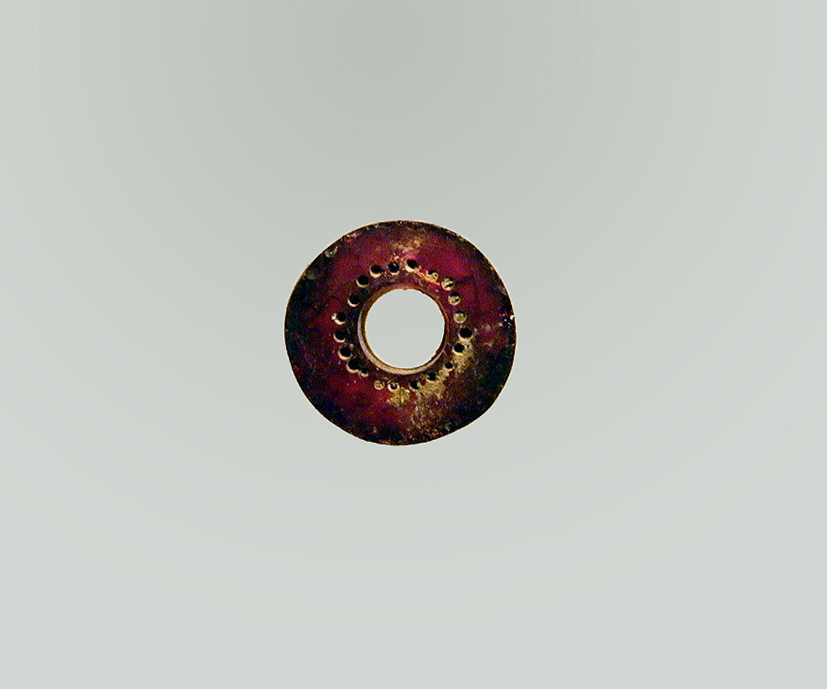 Round piece with hole in center, surrounded by small perforations.