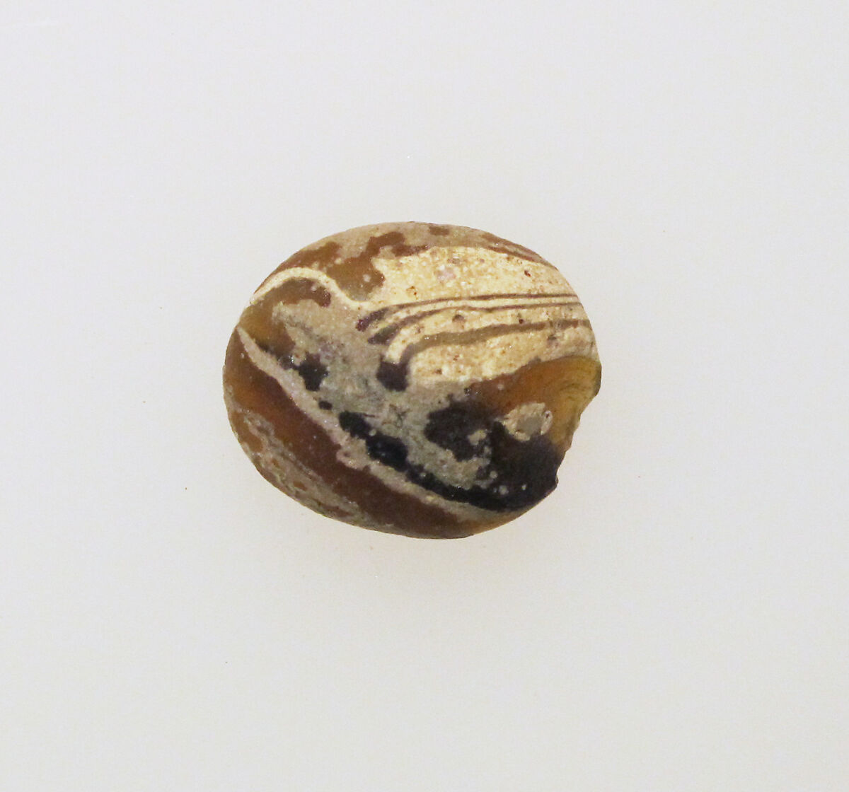 Amber oval pinhead with white lines.