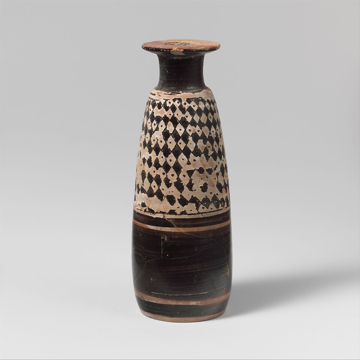 - Title: Terracotta Columbus alabastron (perfume vase)