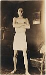 [Walker Evans with Cigarette in Mouth and Wearing Towel, in Fraternity House at Philips Academy at Andover, Massachusetts]