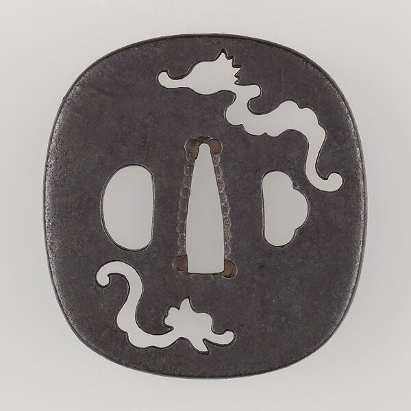 A tsuba is a sword guard and part of a sword mounting. It is mounted between the sword’s blade and grip to protect the user’s hands.
