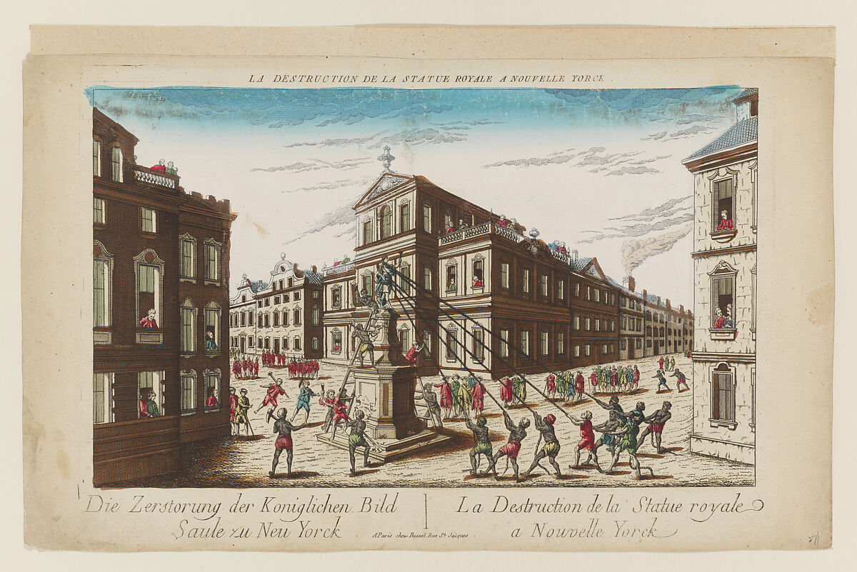 - Title: La Destruction de la Statue Royale à Nouvelle Yorck–Die Zerstörung der Königlichen Bild Säule zu Neu Yorck (Destruction of the Royal Statue at New York)