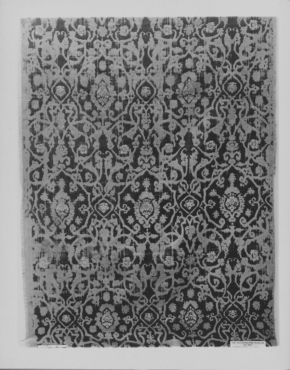 - Medium: Silk and metal wrapped thread; brocaded
