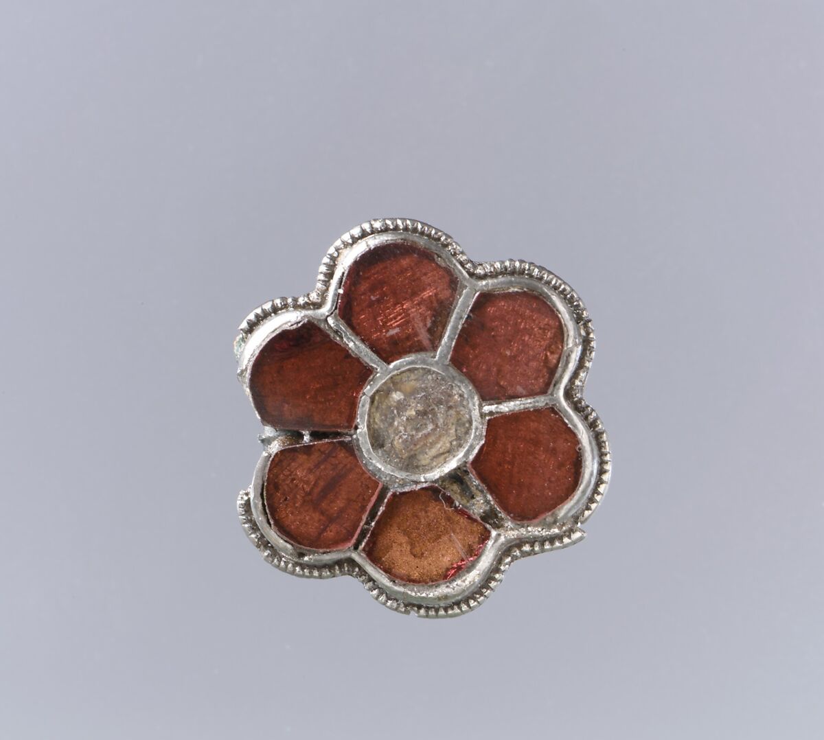 - Medium: Silver-gilt, beaded filigree edging, garnets with patterned foil ...