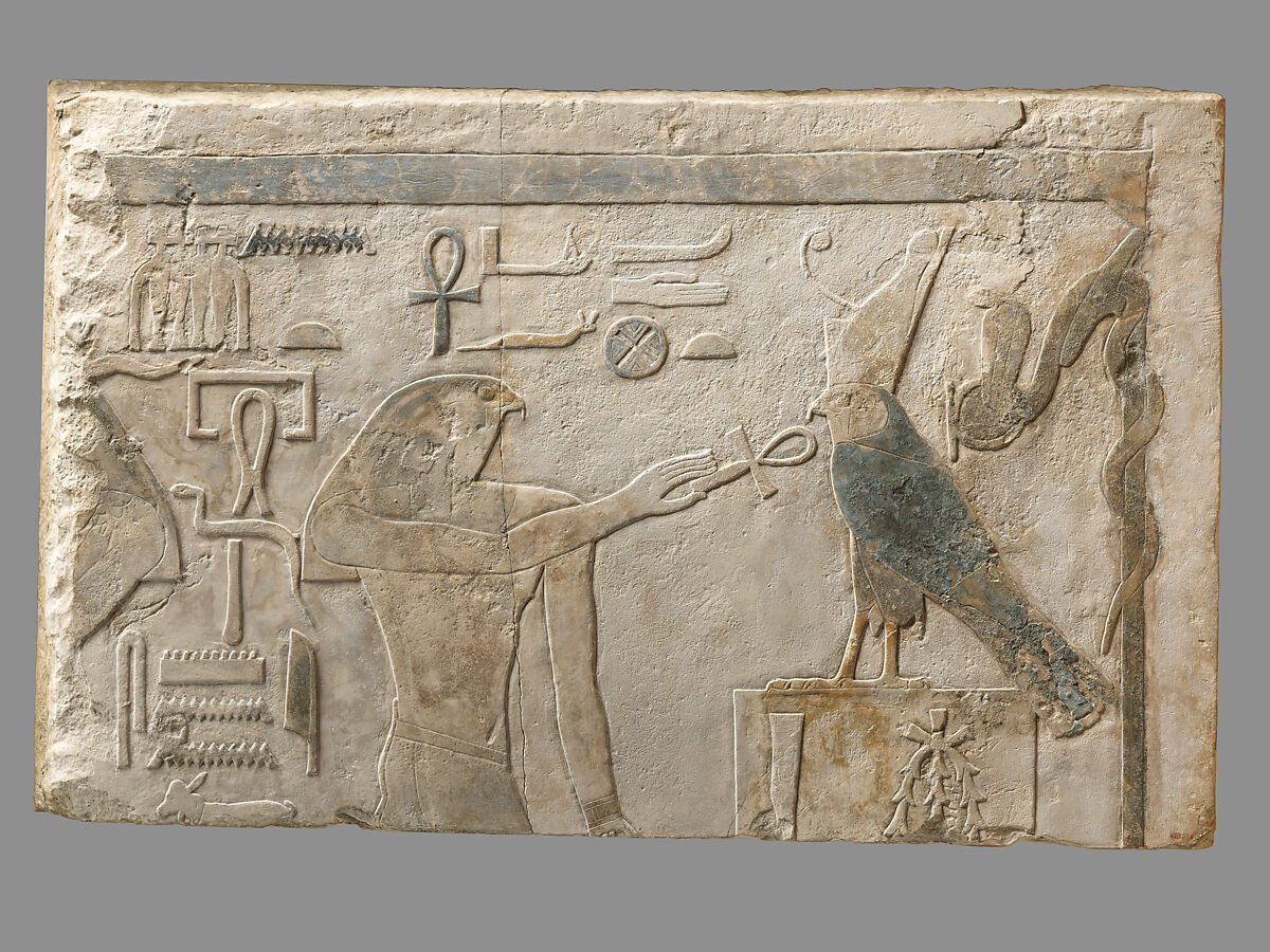 - Title: Lintel depicting Horus offering an ankh sign to the Horus name of King Amenemhat I
