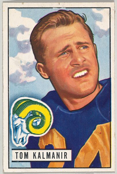 - Title: Card Number 77, Tom Kalmanir, Halfback, Los Angeles Rams, from the Bowman Football series (R407-3) issued by Bowman Gum