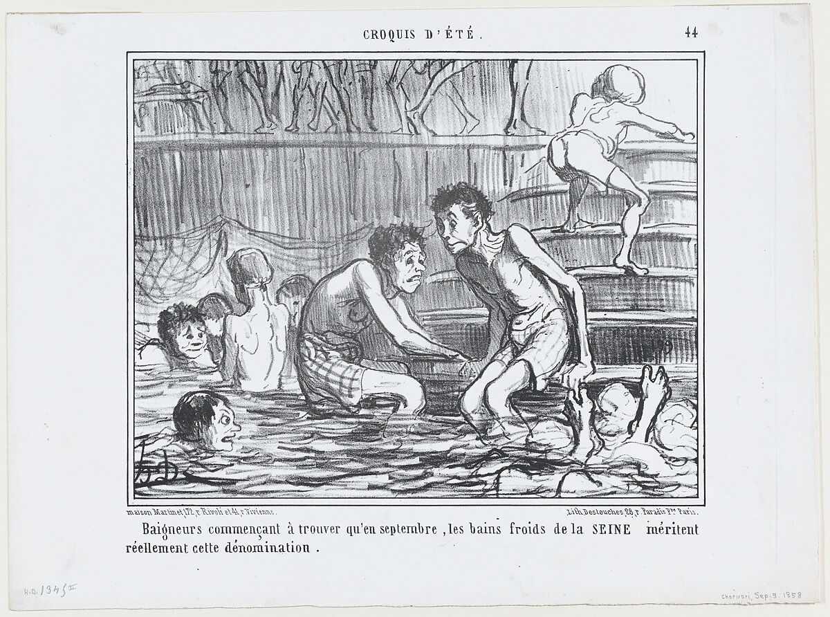 - Title: Baigneurs commençant à trouver qu'en septembre..., from Croquis d'Été, published in Le Charivari, September 3, 1858