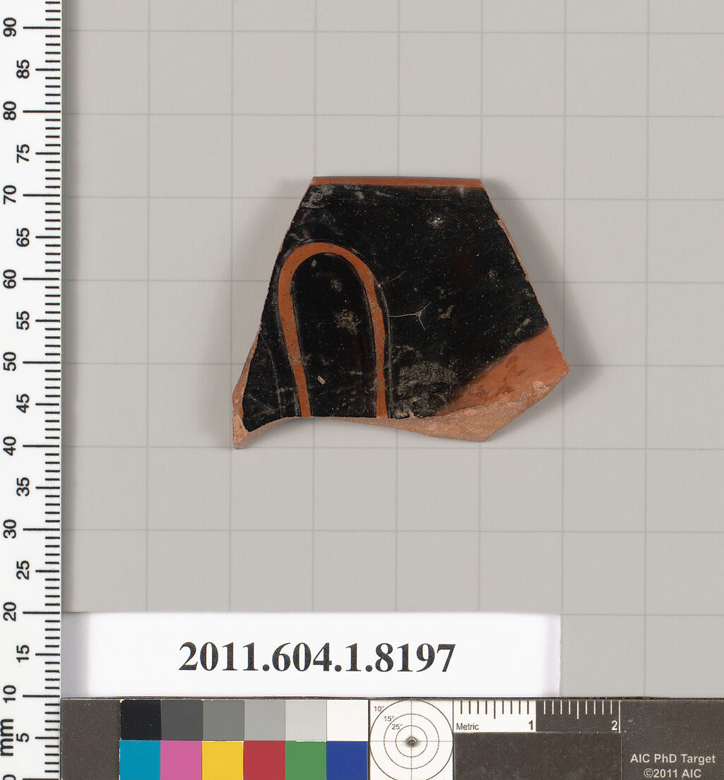 - Title: Terracotta rim fragment of a kylix (drinking cup)