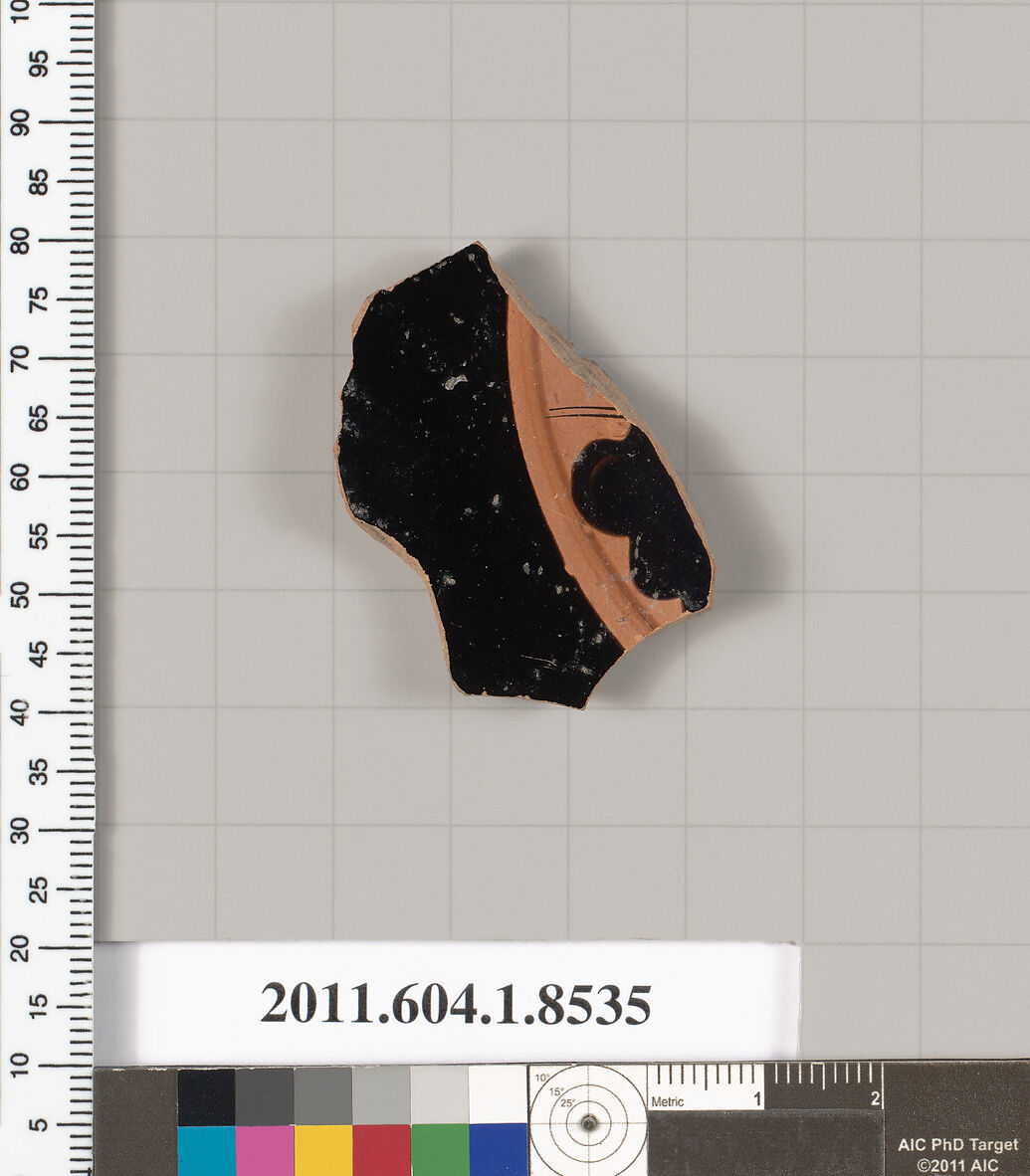 - Title: Terracotta fragment of a stemless kylix (drinking cup)