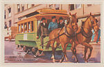 Horse Car from Story of Transportation Educational Pictures (W608-6). Published by D. Robbins & Co., New York City. 24 pictures in set. Front: hand-drawn color reproduction picturing particular mode of transportation. White border. Back includes text regarding highlighted image and the pleasure or business of "going places". #7. Lower left in image: Charles Rosner.