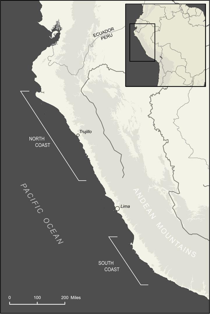 Map of Peru showing the North and South Coast.