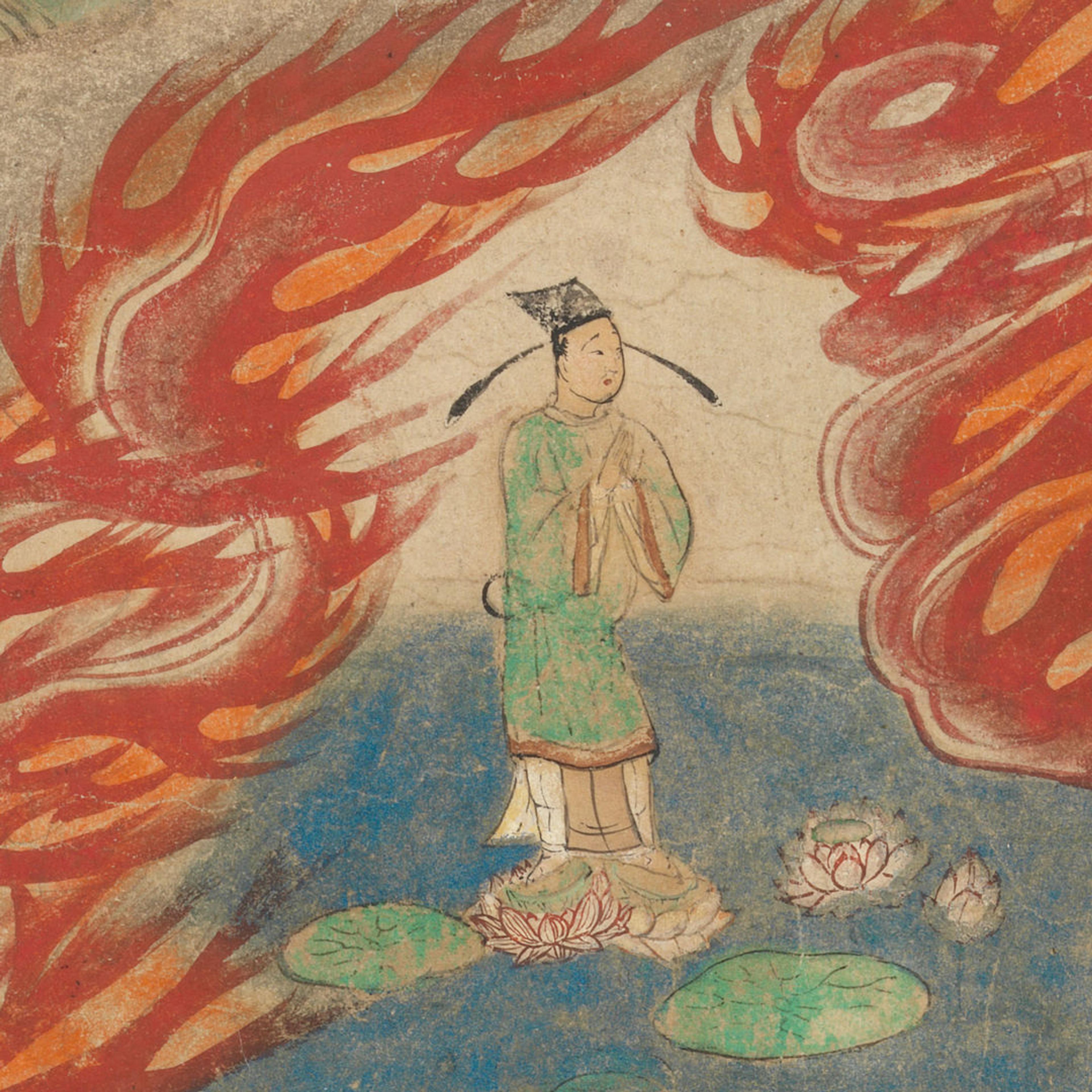 The exhibition begins with sacred images from early Japan that speak to concerns about death, dying, and the afterlife or that were created in response to other uncertainties, such as war and natural disaster. The presentation then proceeds chronologically, highlighting medieval Buddhist images of paradises and hells, Zen responses to life and death, depictions of war and pilgrimage, and the role of protective and hopeful images in everyday life. In the final galleries, the exhibition’s underlying themes are explored through a selection of modern woodblock prints, garments, and photographs.