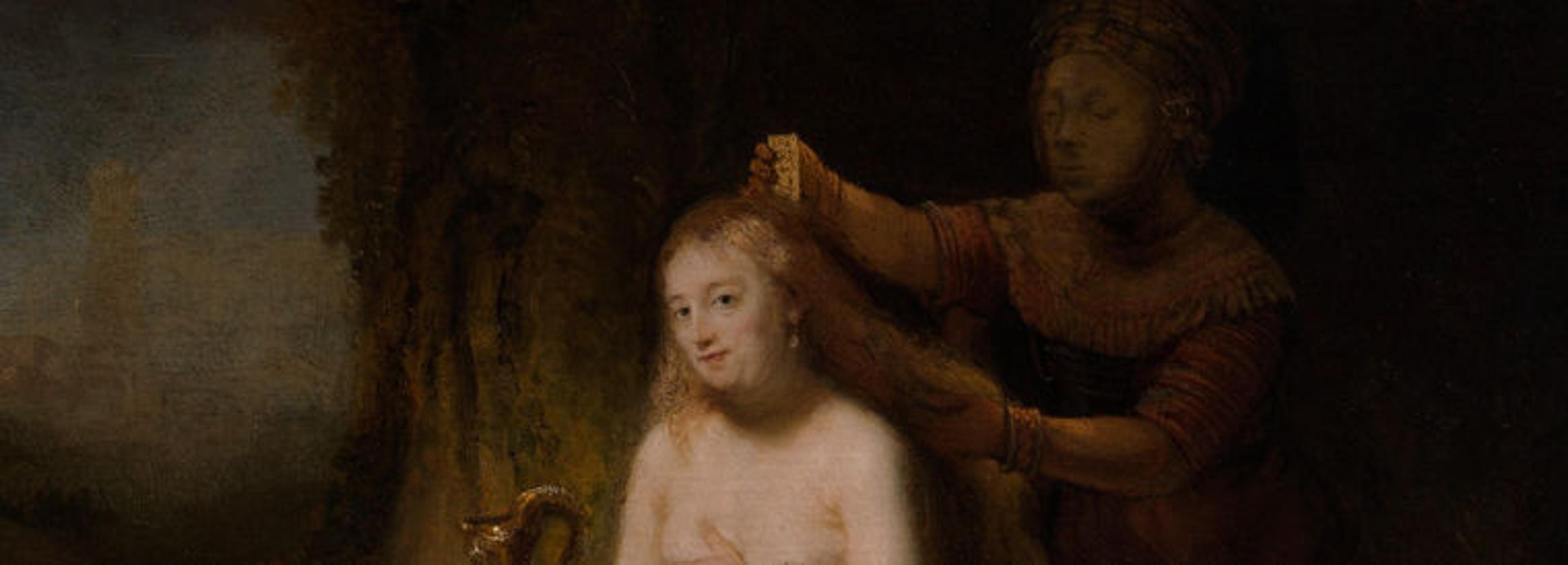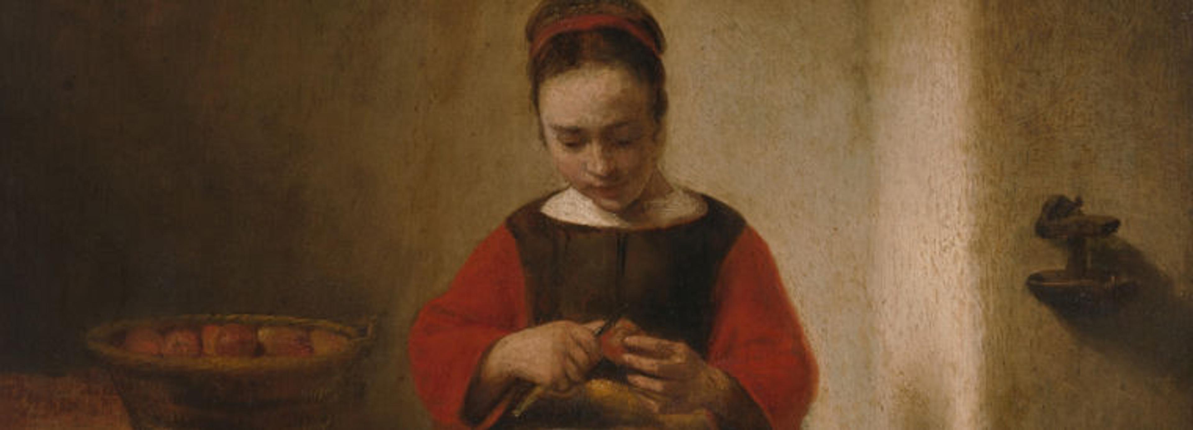 At his death in 1679, the Dutch painter Jan van de Cappelle left behind a collection of 135 drawings by Rembrandt depicting vrouwenleven, or "lives of women." This term encapsulates one of the major themes of seventeenth-century Dutch art: the everyday activities of women observed while keeping house, getting dressed, or caring for children. This section moves up the social ladder of the Dutch Republic, from Rembrandt's housekeeper to Gerard ter Borch's beautifully dressed younger sister, to explore how Dutch artists depicted this novel subject matter.