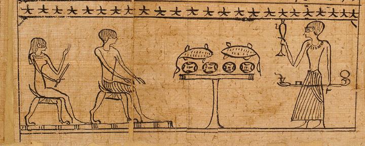 The brush strokes used for the hieratic signs are clearly thicker than the lines employed for the figures, indicating that reed brushes with tips of different widths were used. However, we do not know whether one person served as both scribe and draftsperson, as the two professions were closely related.