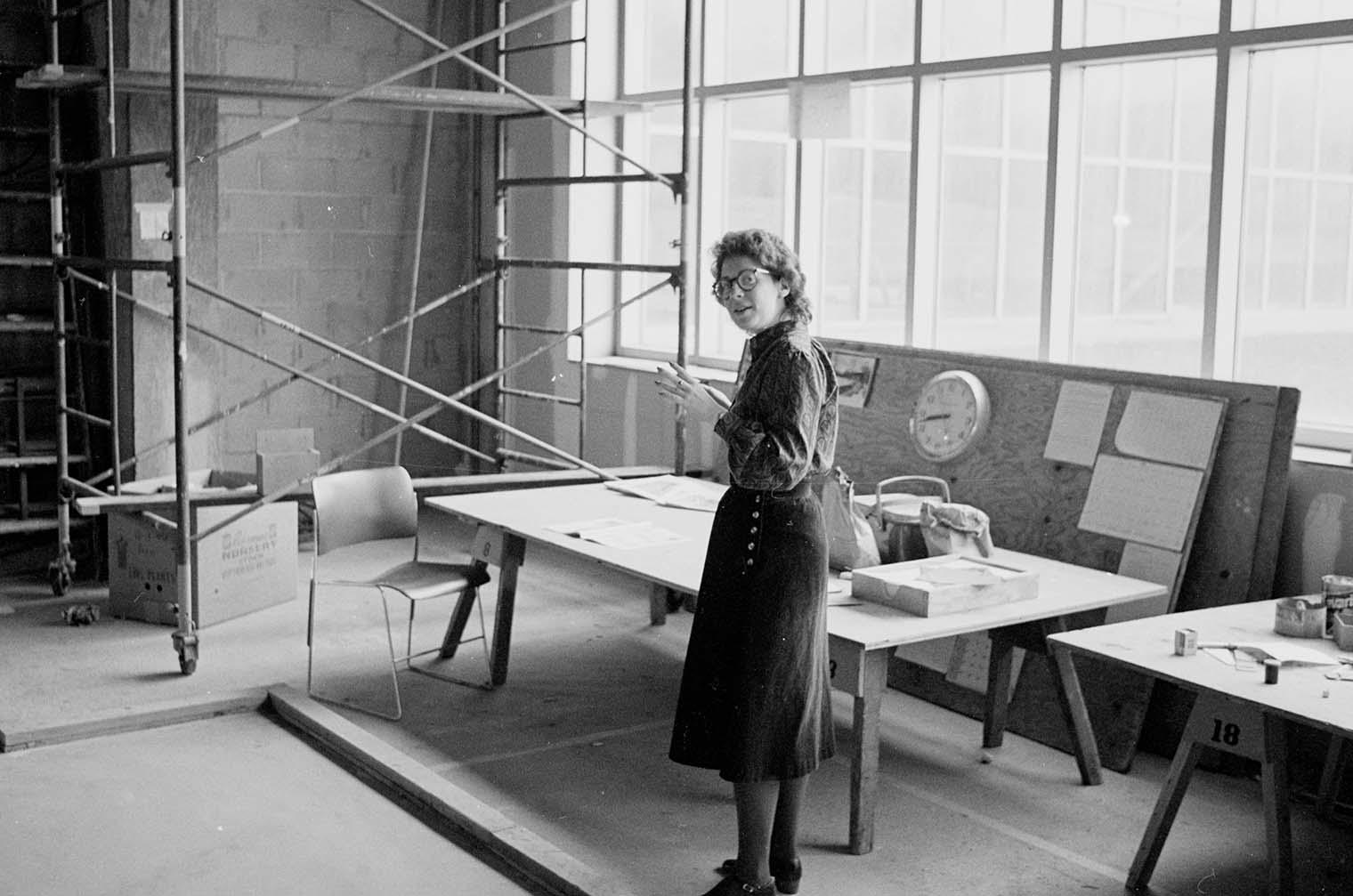 Amelia Peck during the installation of the Frank Lloyd Wright Room at The Met, ca. 1982