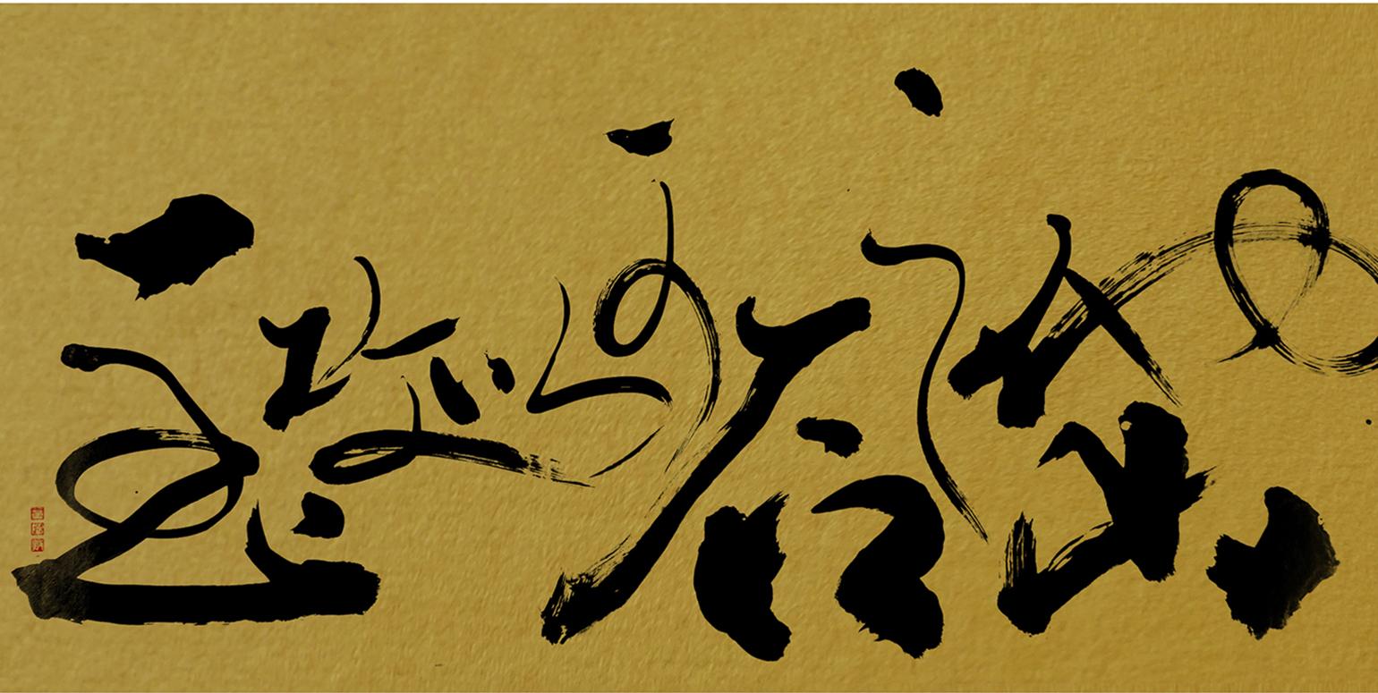In the 2017 version, the eight characters on gold, rectangular paper, flow horizontally, similar to writings on a scroll. The important characters in the phrase are emphasized in dense ink, similar to The Met version, indicating the semantic and visual integration in her work.