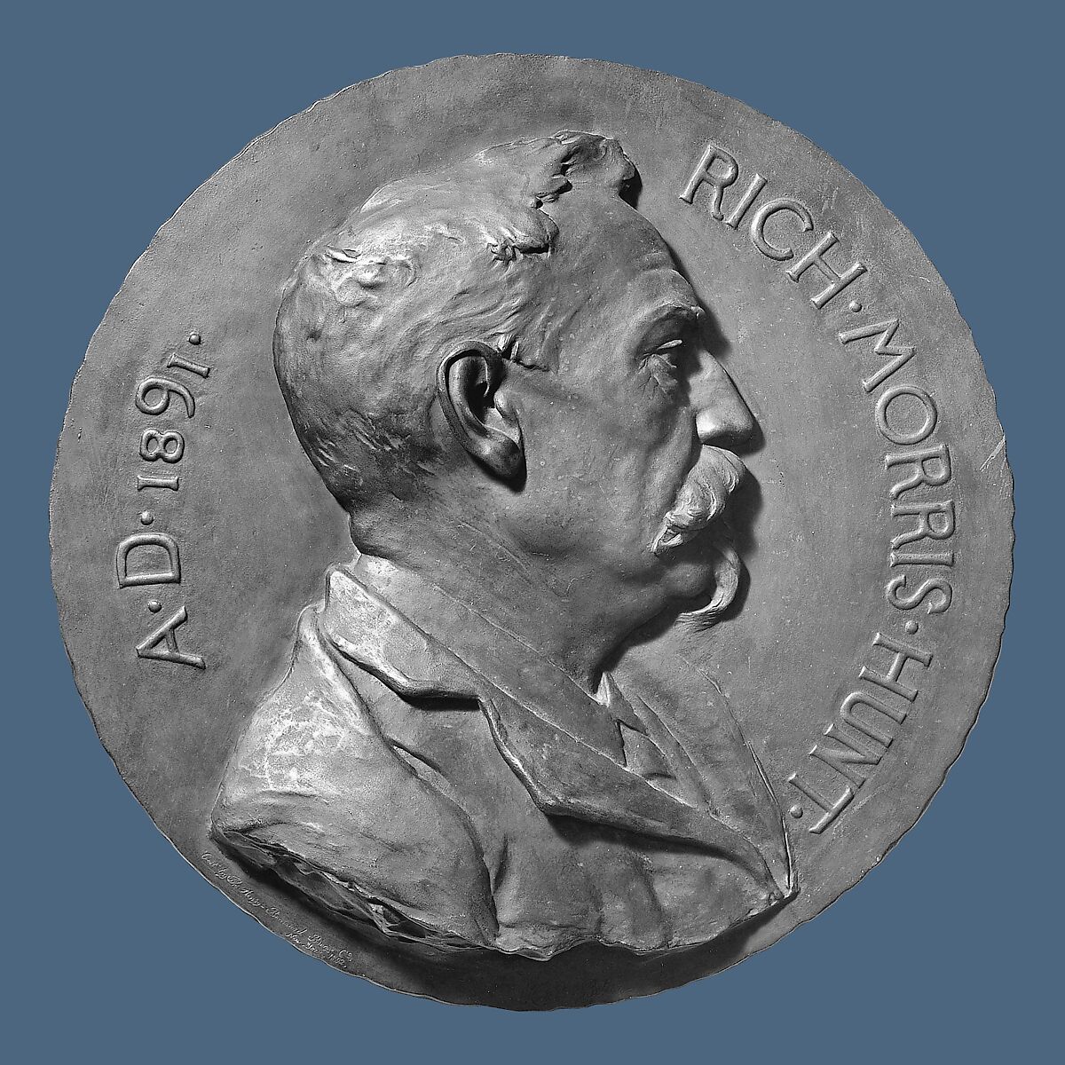 Bitter and the architect Richard Morris Hunt (1827-1895) collaborated on the execution of some of the most lavishly decorated American buildings of the early 1890s. After the completion of the Marble House in Newport, Rhode Island, owner William K. Vanderbilt commissioned Bitter to carve marble relief portraits of Hunt and Jules Hardouin-Mansart who had designed Louis XIV’s Palace of Versailles, a nod to the great French tradition in which Hunt worked. This cast was produced in bronze in 1892, presumably from the original plaster model (1891; Art Institute of Chicago) and descended in the Hunt family.