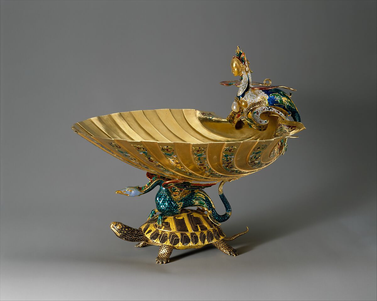 - Medium: Gold, partly enameled; pearls
