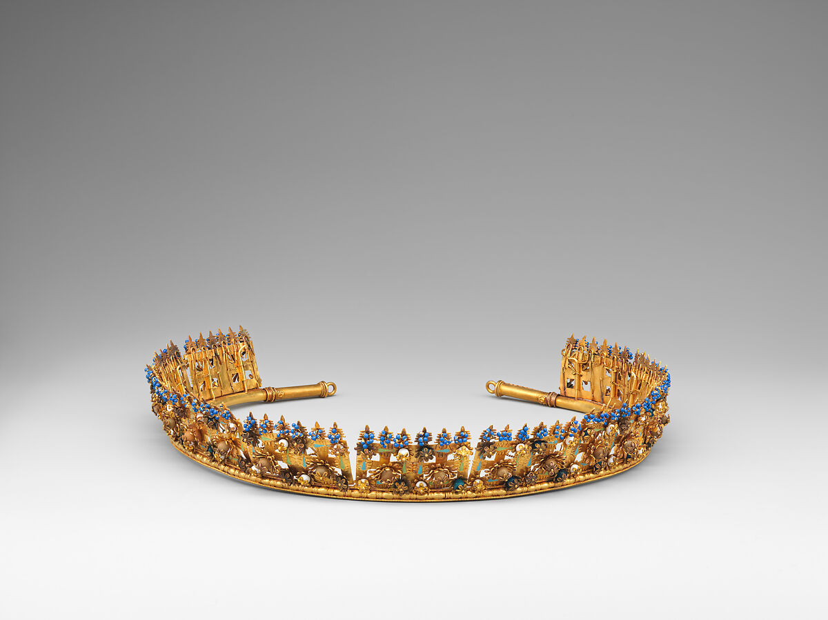 This object and the group to which it belongs (see also 2014.713.1–.10) reflect the keen interest in historical styles in nineteenth-century Europe. Artists and designers looked to various artistic periods for forms and motifs. There was also an interest in reproducing works of art from earlier epochs with historical accuracy—an approach that is particularly evident in the taste for so-called archaeological jewelry (jewelry based on excavated examples from antiquity), which reached its zenith in the middle of the century.