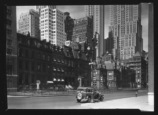 - Title: [Second Empire Town Houses and Skyscrapers with Parked Car in Foreground, New York City]