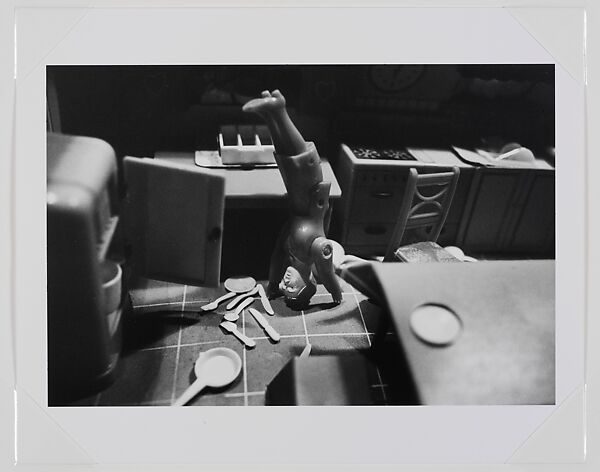 Shortly after graduating from art school in the early 1970s Simmons purchased the toys from a garage sale, not knowing if or how she would use them. For the nascent feminist movement, such "toys for girls" were seen as agents of persuasive indoctrination; Simmons nevertheless also understood the more complex allure of dolls, their atavistic powers. Her first pictures using the toys-these shadowy setups of a "happy homemaker" in a miniature kitchen-are suffused with dread and dark humor, suggesting a late-night emotional crackup.