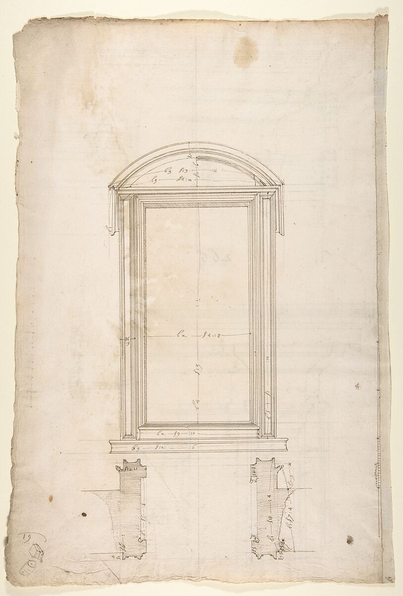 - Title: San Lorenzo, Library, Ricetto, portal to Ricetto, elevation; plan (recto) San Lorenzo, Library, Ricetto, portal from cloister, details (verso)