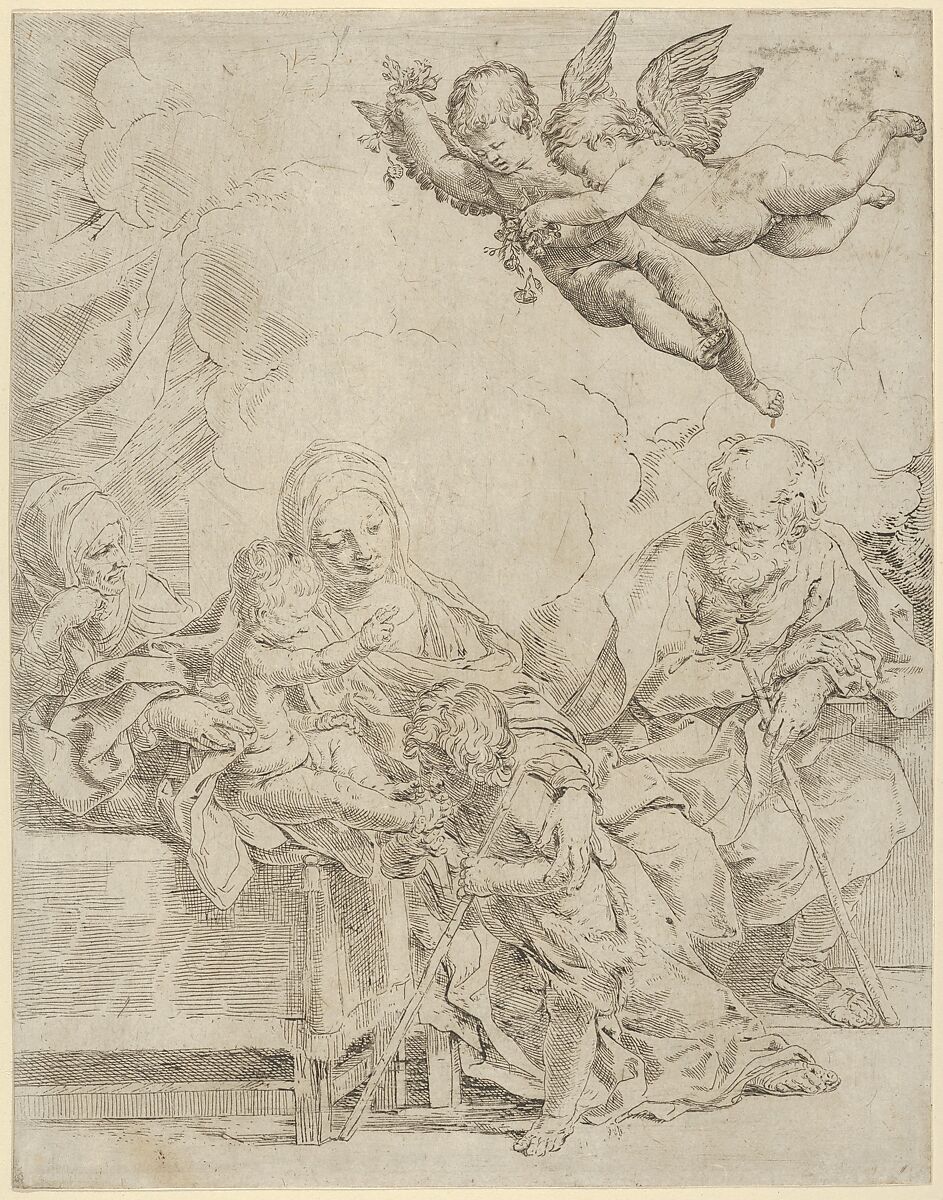 - Title: The Holy Family with young John the Baptist and Saint Elizabeth, two angels above