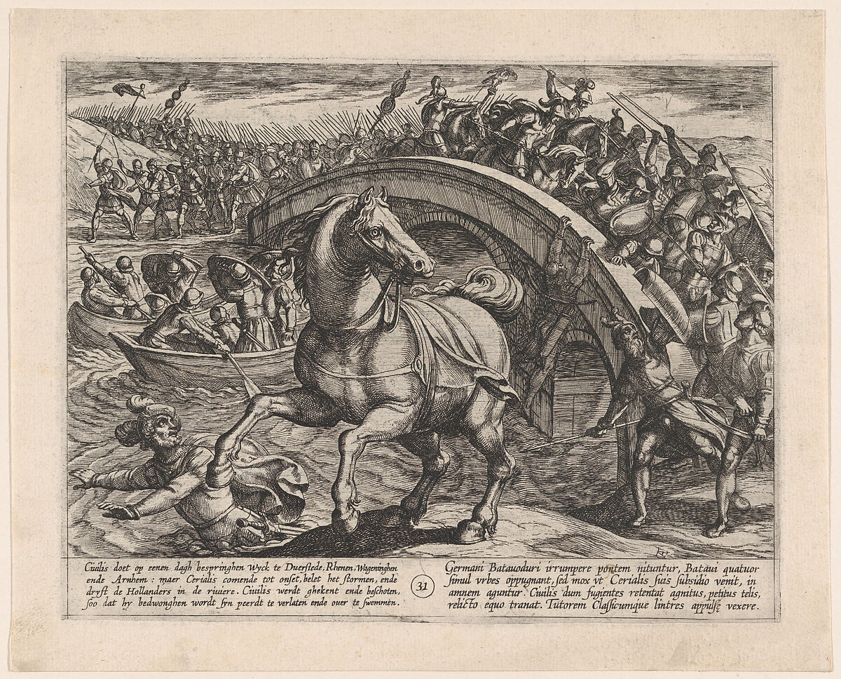 - Title: Plate 31: Civilis Forced to Dismount and Swim Across the River, from The War of the Romans Against the Batavians
