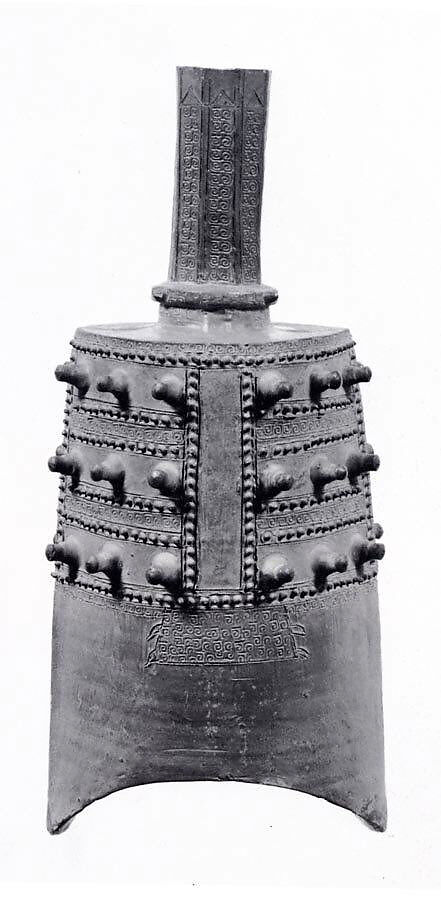 During the Eastern Zhou period, graduated sets of bronze bells became an important adjunct to courtly ceremonies as well as a mark of elite status. This pottery imitation was undoubtedly part of a set intended for burial to provide the tomb occupant with music in the afterlife.