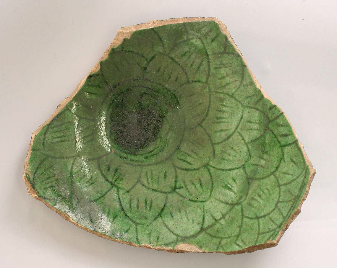 - Medium: Earthenware; incised decoration under green glaze