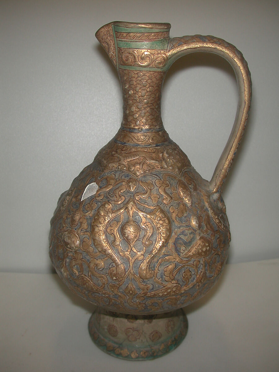 - Medium: Stonepaste; molded decoration; overglaze painted and gilded on monochrome opaque glaze (mina'i)