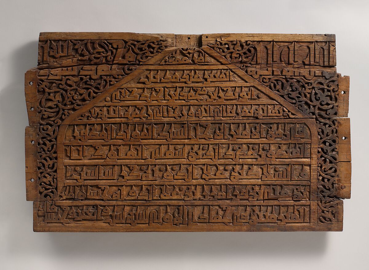 This fragment comes from a minbar, or pulpit, from which announcements and Friday sermons were delivered to the Muslim community. The fragment crowned the upper part of the minbar where the imam, or prayer leader, would sit. The patron of the minbar, Abu Bakr b. Muhammad, was related to Sultan Sanjar.