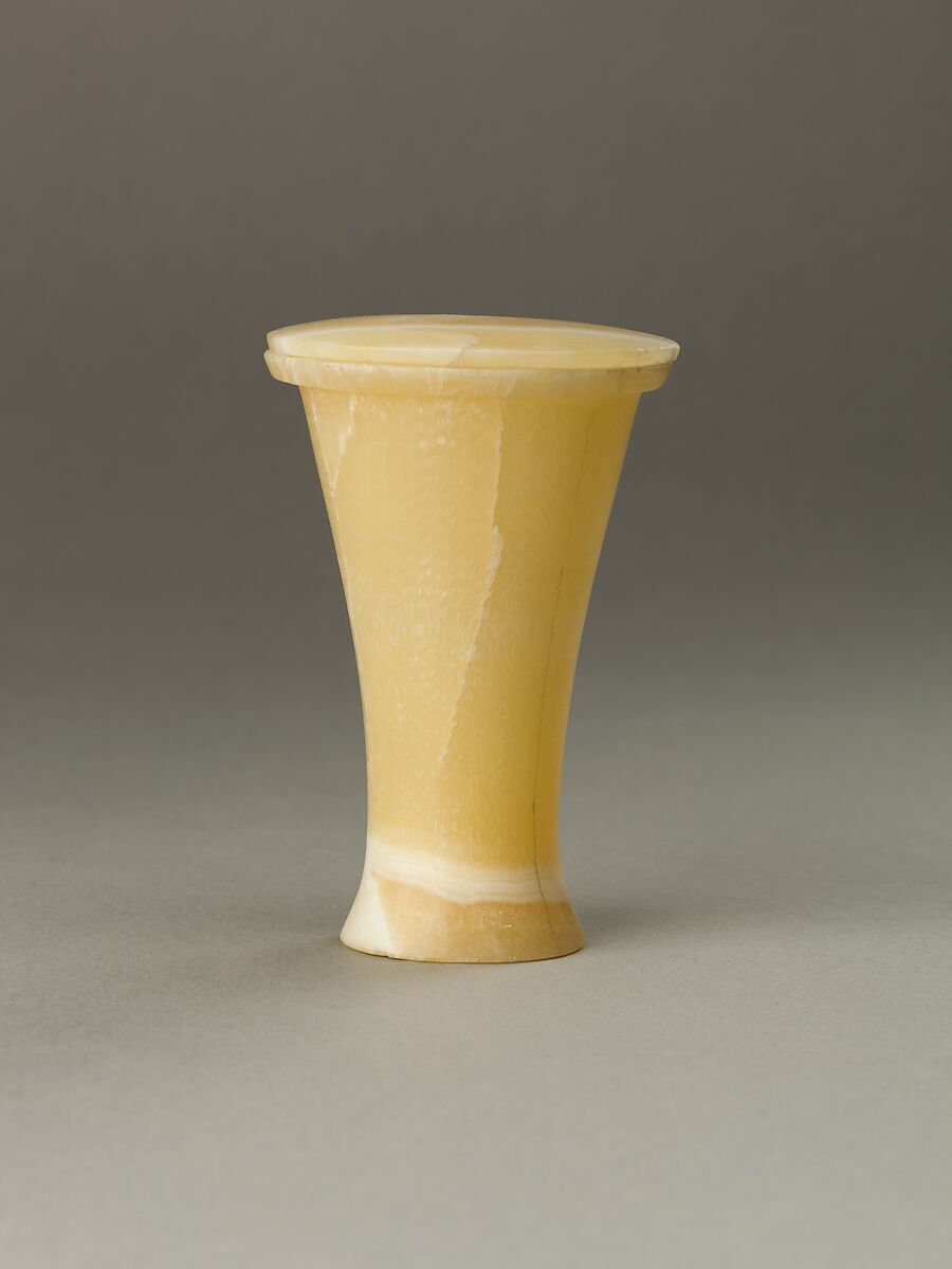 26.7.1439–.1442 are ointment jars that were found scattered at the bottom of a tomb shaft at Thebes. Nearby was a box belonging to a man named Kemeni (26.7.1438). Kemeni's box has a drawer with spaces for eight small ointment jars, so it is assumed that the box and jars go together.