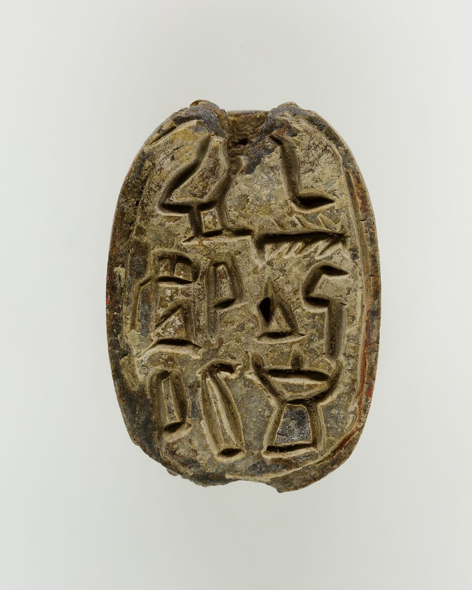 This scarab belongs to Iti, an attendant of the pharaoh’s table, as the hieroglyphic inscription specifies.