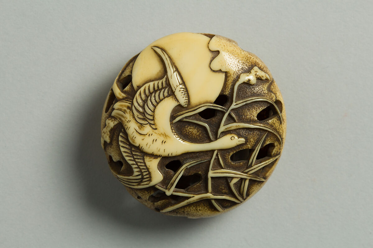 - Title:Netsuke of Goose in Flight against Moon