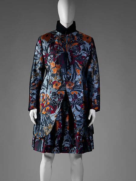Avant-garde British fashion is often characterized by paradox. On the one hand, the various practitioners are deeply rooted in the aesthetic and technical traditions of their sartorial history. On the other, their citations of the past are inflected by a deliberate irreverence, alarming transpositions, or an ironic and transgressive interpretation of that history. Emerging designer Felix Chabluk Smith, who works in the context of the most codified forms of Savile Row menswear, introduces through explicit allusion some of the splendid details of historical British dress. The basis of this ensemble is a sumptuous brocade derived from an original pattern by renowned eighteenth-century textile master Anna Maria Garthwaite. To that historical precedent Chabluk Smith has added a series of details that inform his eccentric proposal for contemporary