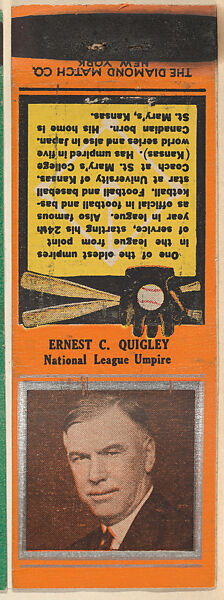 - Title: Ernest C. Quigley, National League Umpire, from the Baseball Players Match Cover design series (U1) issued by Diamond Match Company