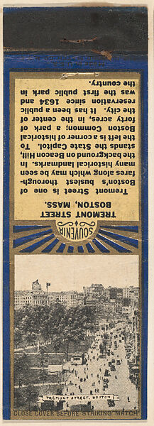 - Title: Tremont Street, Boston from New England, Souvenir Views Match Cover series (U40.7)
