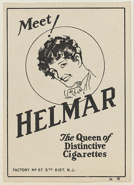 - Title: Meet Helmar, The Queen of Distinctive Cigarettes, from the "Girls" series (T67), issued with Helmar Cigarettes by S. Anargyros Tobacco Company