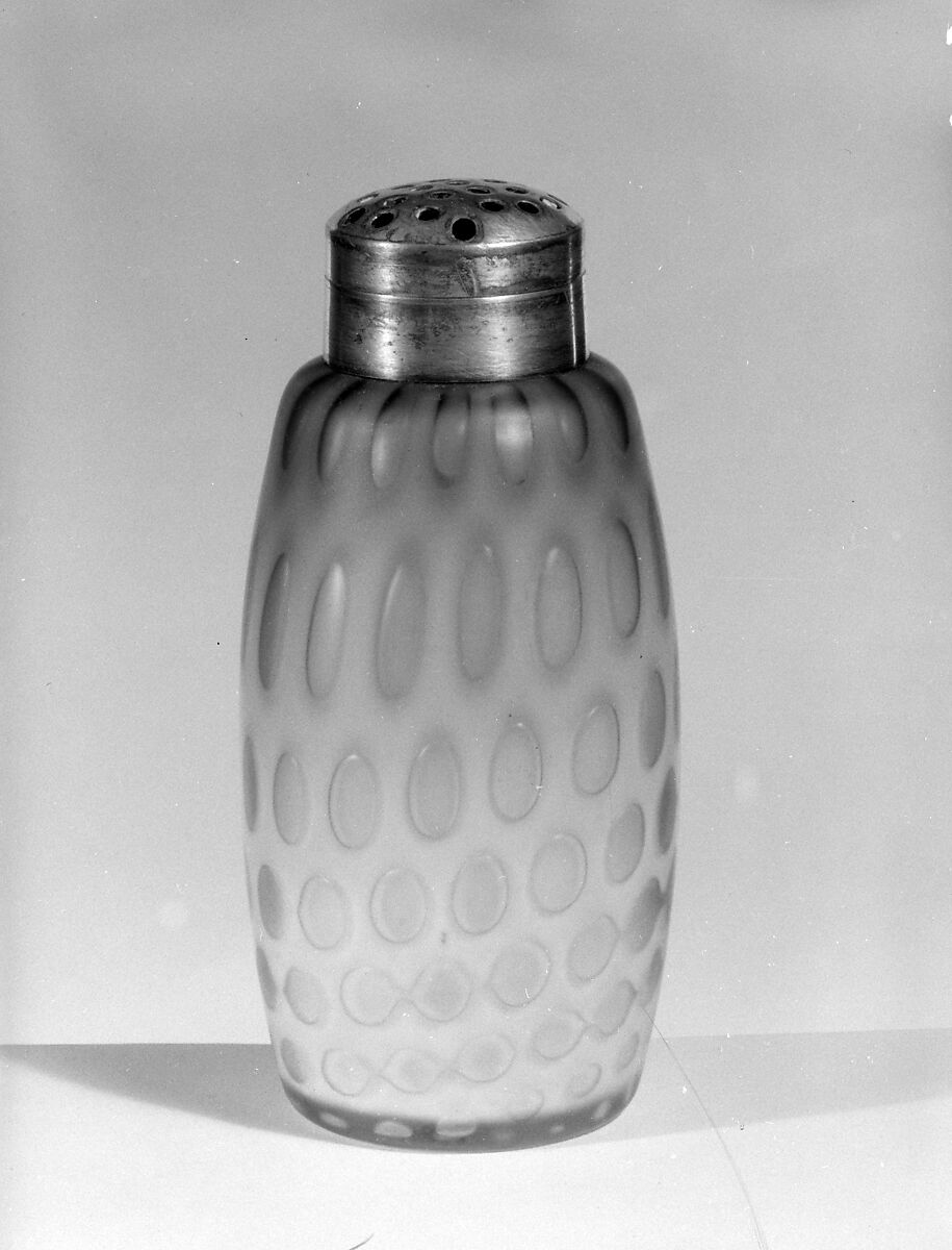 This satin-glass sugar caster is decorated with elongated oval dots.