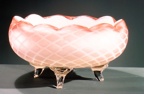 - Medium: Blown satin white and cranberry opaque and colorless glass