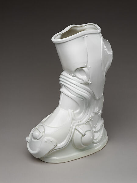 A leading contemporary artist, Lee Bul has explored issues of gender, inequality, oppression, and technology since the 1980s through her varied artistic practice. This porcelain from her 2000 Cyborg series is characterized by human-size but fractured forms with curvaceous shapes, long nails, and breast-like elements that suggest a feminine gender. Like most of her work, the project juxtaposes concepts in tension—human and machine, paragon and monster, beautiful and grotesque, utopia and dystopia. By using porcelain, Lee connects the past and present, old and new technologies. As these parts are similar in size to Joseon porcelain vessels like those on view here, Lee also illustrates how objectification, particularly of Asian women, extends to the decorative arts, which have long fostered exoticization and fetishization through Western styles such as Chinoiserie and Japonisme.