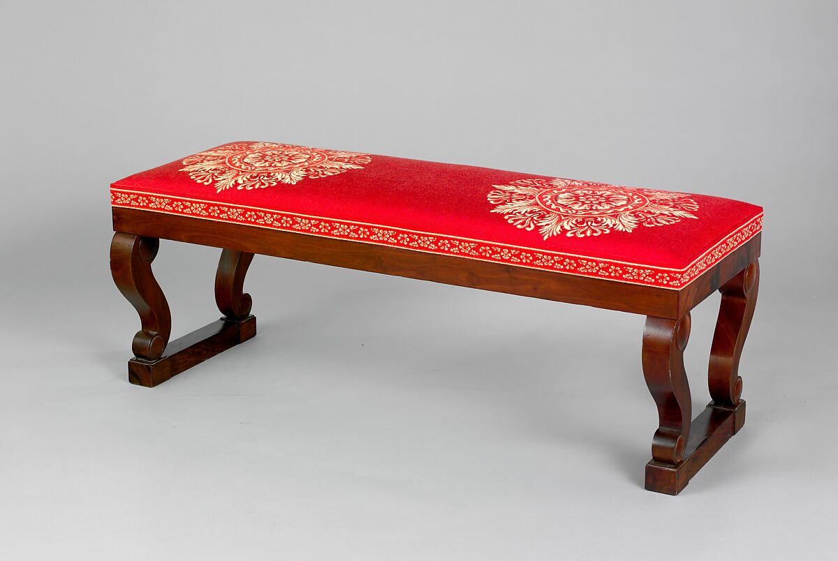 In the early nineteenth century, designers and furniture makers embraced a revival of Classical prototypes from ancient Greek and Roman architecture and decorative arts, like this taboret (or stool). The curule form, or ogee-crossed stretcher base, plays on a Classical folding stool (sella curulis) often used by Roman magistrates which was popularly adapted by nineteenth-century French and English designers. Designs for taborets with curule bases appear in well-known publications from the period like Pierre de La Mésangère's Collection de Meubles et Objets de Goût (1820–1831) and the London fashion journal, Ackerman’s Repository of Arts.