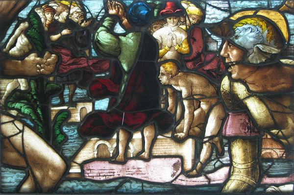 Moses Presenting the Tablets of Law is slated to undergo conservation in the near future, and we look forward to investigating further some of the interesting observations on Bousch's technique that came up during the treatment of The Deluge. In the meantime, we invite you to come view both of the windows in gallery 502 and compare for yourself!